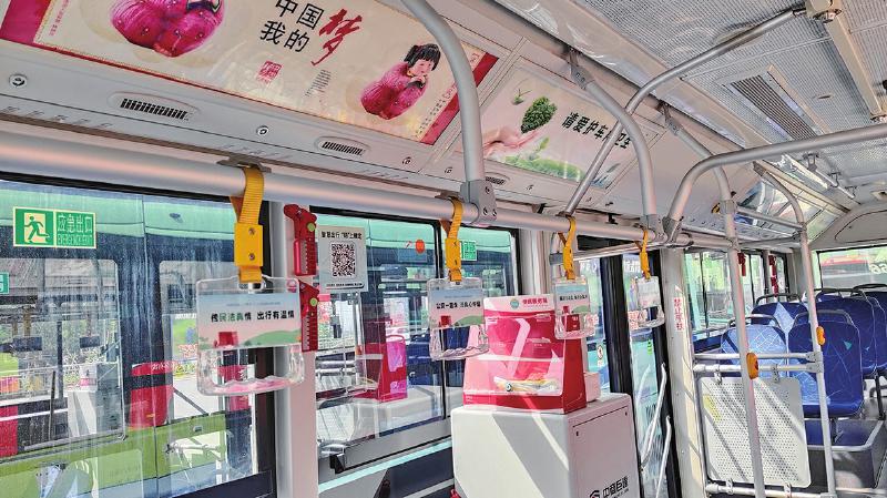 记者在现场看到,车身“民心所盼 法润新区典筑未来”标识,引人注目;车内“传民法典情 出行有温情”“公交一路走 法典心中留”等普法宣传标语,入耳入心。通过车身巨幅法治广告、车厢展板及扶手的法律元素植入,构建“车身可视、车内可学、全程可感”的立体宣传矩阵,将公交车打造成移动式的“法治讲堂”,让法律法规与群众面对面、零距离,法律知识“抬头即看、上车即学”。