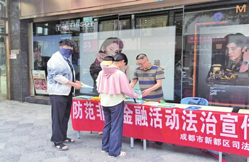 为进一步提高群众对非法金融活动的防范意识,增强群众对非法集资的警惕性、敏锐性,近日,成都市新都区司法局在新都区懿润百货开展防范非法金融活动法治宣传,以实际行动守护群众“钱袋子”,筑牢法治安全防线。