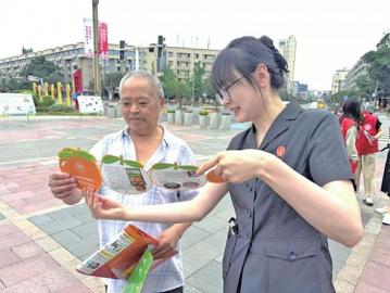 活动中,“蒲”法干警通过制作案例宣传展板、发放宣传手册和文创扇子等方式,热情地向来往群众介绍世界环境日的由来及环境保护法等与生态环境保护有关的法律法规和政策性文件,重点讲解了森林法中关于林木保护、林地管理的规定,以及破坏森林资源需要承担的法律责任。干警还结合蒲江县当地实际情况,穿插了许多破坏环境资源的典型案例,以通俗易懂的语言,深入浅出地向群众阐释非法砍伐、盗伐林木等行为对生态环境的破坏,并针对群众提出的关于环境污染纠纷、生态破坏行为举报等问题,进行详细的解答和指导,引导群众牢固树立生态环境保护理念,养成绿色、低碳、环保的生活方式,呼吁广大人民群众做生态文明理念的积极传播者和模范践行者。