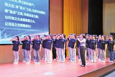 现场,“天府星火·盐未”团队联合自贡市旅游职业高级中学法治社团演绎自编自导的情景剧。演员们的表演引发全场共鸣,掌声雷动。笑声与沉思交织,法治的种子悄然播撒心田。自贡市检察院干警杨洋以“法治守护青春 少年向阳成长”为题,以案释法,以情动人,为学生们清晰地勾勒出行为的法律边界与违法犯罪的沉重代价。“这种参与式的普法教育,点燃了孩子们内心的法治微光。”受邀参与活动的全国人大代表曾道群说道。