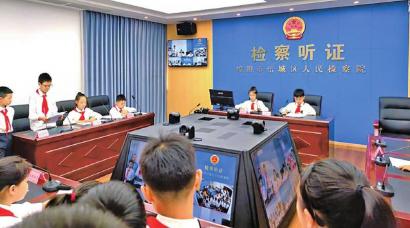 近日,绵阳市实验小学40余名学生走进绵阳市涪城区检察院,其中几名学生代表扮演“检察官”“听证员”“书记员”等,组成“听证团”,对一起未成年人故意伤害案进行附条件不起诉模拟听证。在这场由绵阳市涪城区检察院联合涪城区委社会工作部主办的检察开放日活动中,通过角色扮演、模拟实战,让“法治种子”在笑声与思考中悄然萌芽。