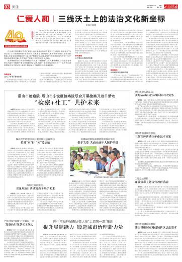本报讯(邱兴香 任媛)为持续深化未成年人综合司法保护凝聚社会力量共筑未成年人保护防线连日来攀枝花市检察机关联合党委社会工作部门举办“携手关爱 共护未来”检察开放日系列活动