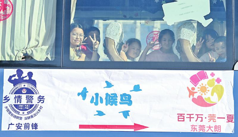 本报讯(朱茂 四川法治报全媒体记者 张磊 雍剑波 文/图)3日上午8时,2025护航“小候鸟”团圆行动在四川省广安市前锋区温暖启程。326名留守儿童在广安市公安局前锋区分局民警的全程护送下,乘坐7辆大巴车前往1500多公里外的广东省东莞市大朗镇,与在那里务工的父母团聚。这是广安市前锋区连续第二年开展这项暖心行动,历时27个小时,载着“小候鸟”的大巴车安全抵达东莞市大朗镇巷头文化广场。