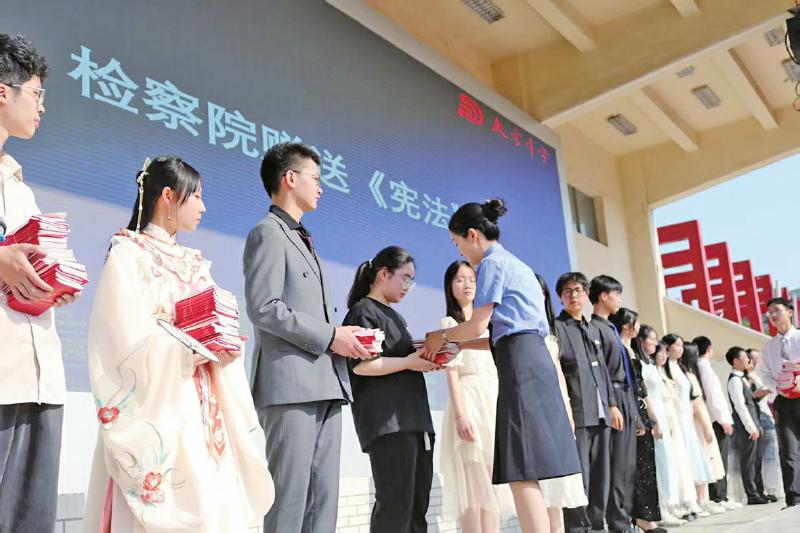 检察官向学生们赠送宪法