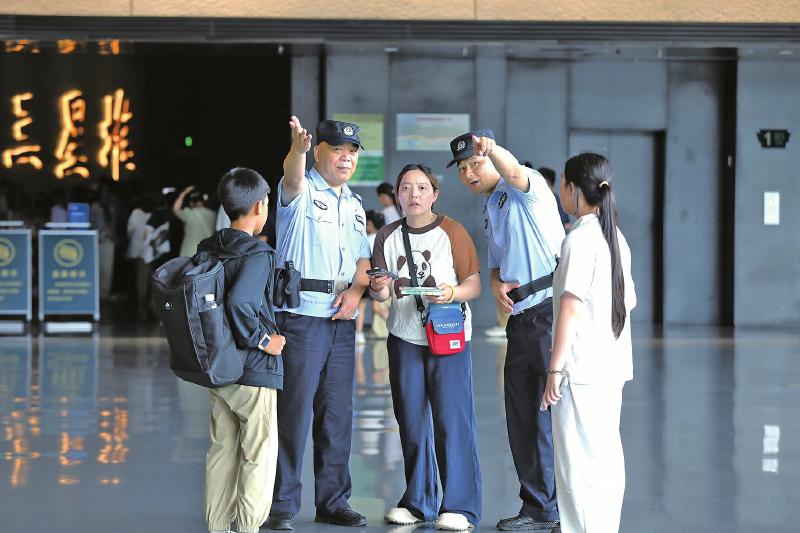 在游客中心旁的智慧警务服务站,刘女士输入身份信息后,终端机自动打印出加盖电子印章的临时身份证明。从求助到入馆,全程不到3分钟。“这个服务太贴心了!”刘女士特意举着身份证明与青铜大立人进行合影,镜头见证了这趟别有意义的博物馆之旅。