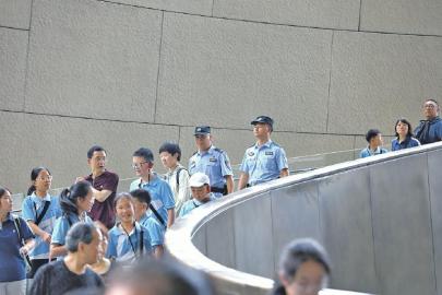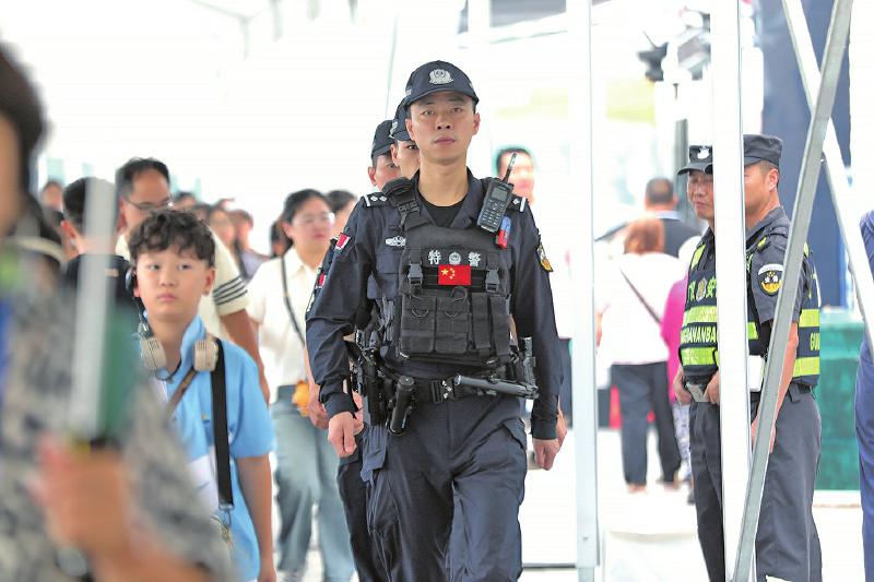 民警在博物馆内来回不间断地进行巡逻,保障游客安全参观