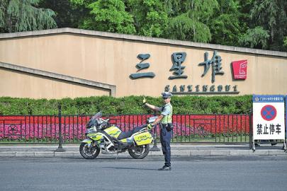 广汉市公安局结合三星堆博物馆实际,精心制定车辆分流疏导线路,优化线路人员联动部署,为游客提供高效的旅游接待服务