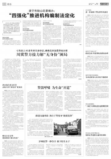 “真的感谢你们这个事情拖了40多年今天终于解决了有了身份证就能够办理医保卡、残疾证等手续真不知道该怎么感谢你们我要给你们送锦旗”76岁老人邓某的家人近日激动地对岳池县公安局民警说道