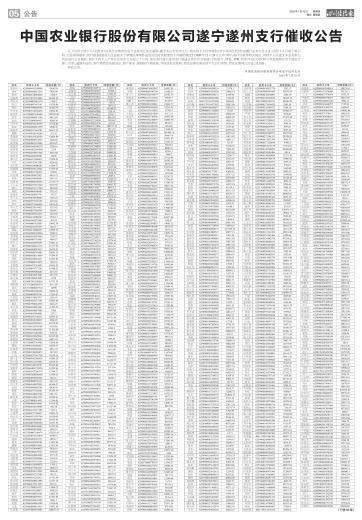 中国农业银行股份有限公司遂宁遂州支行催收公告