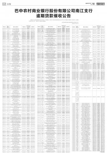 巴中农村商业银行股份有限公司南江支行逾期贷款催收公告