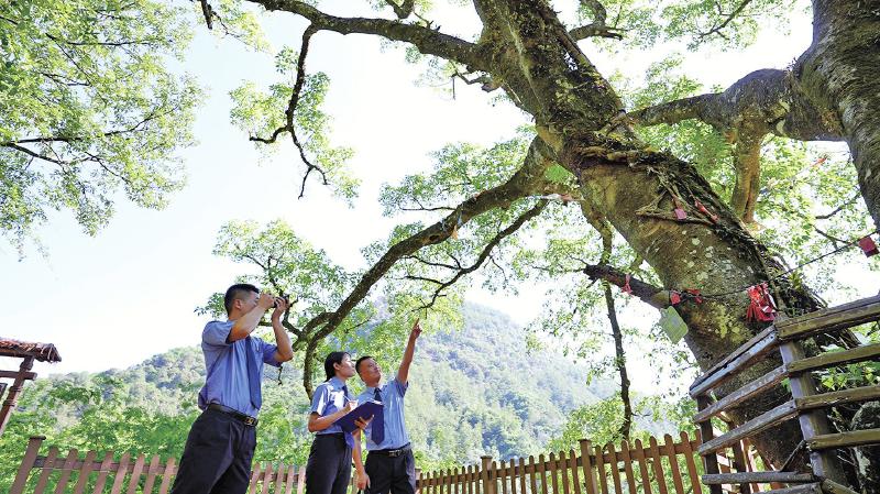 盐边县检察院“大笮”生态卫士公益诉讼办案团队检察官到盐边县格萨拉彝族乡古德村麽些族古部落踏查300余年树龄的二级古树保护情况 攀枝花市检察院供图