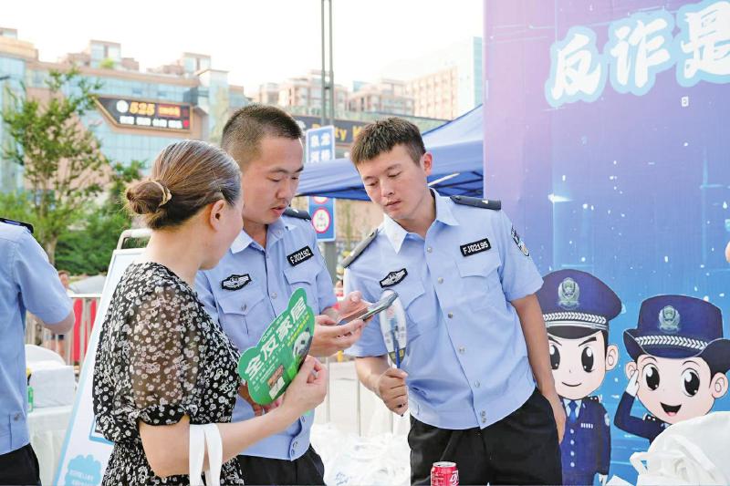 活动现场,民辅警变身为“宣传员”,引导群众参与互动,手把手教学如何使用反诈工具。展台前,“反诈大转盘”“视力表测防骗‘眼力’”“沙包投壶赢好礼”等趣味游戏排起长队,群众在欢声笑语中抢答“虚假投资有何特征”“接到‘客服退款’电话怎么办”等问题,防诈知识“轻松入脑”。LED大屏滚动播放反诈短视频,通过真实案例还原、情景再现等形式,直观揭露“刷单返利”“冒充客服”等常见诈骗手法。