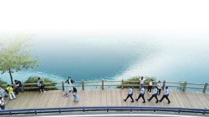 1、执勤民警在九寨沟五花海沿岸开展日常巡逻,保障游客安全,维护景区秩序