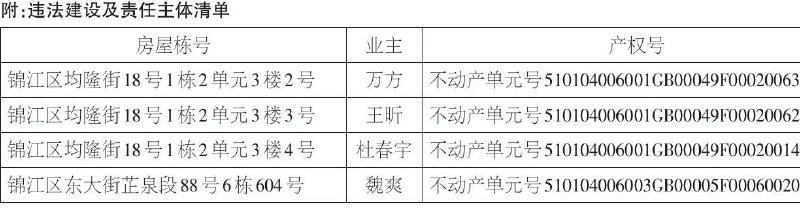 成都市锦江区均隆街18号和东大街芷泉段88号违法建设责任主体(详情附清单):