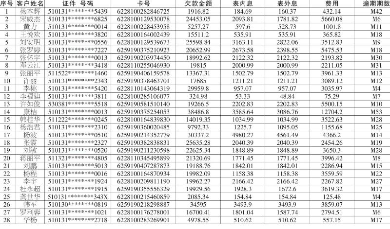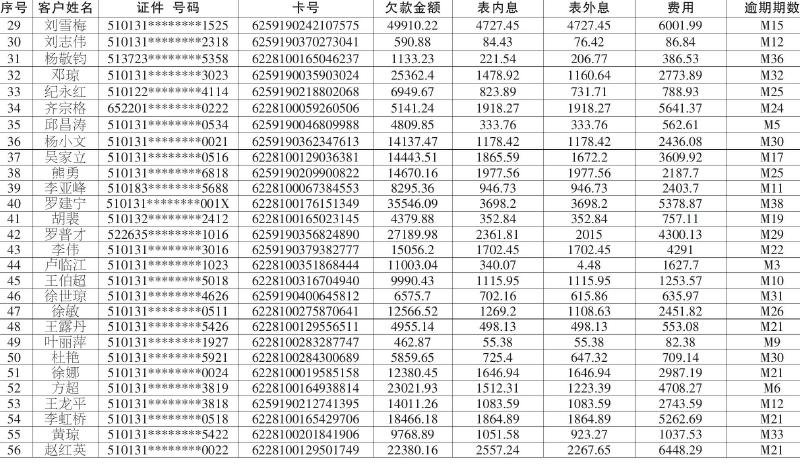 以下客户所持有的中国邮政储蓄银行股份有限公司信用卡账户透支款项已逾期。虽经我行多次催收,截至2025年7月21日,仍未还清。为维护我行合法权益,现予以公告,如已还款请忽略!请下列客户在本公告之日起十日内归还透支款项,否则,我行将根据《中华人民共和国刑法》第一百九十六条以及《最高人民法院、最高人民检察院关于办理妨害信用卡管理刑事案件具体应用法律若干问题的解释》第六条“持卡人以非法占有为目的,超过规定限额或者规定期限透支,经发卡银行两次有效催收后超过三个月仍不归还的,应当认定为刑法第一百九十六条规定的“恶意透支”之规定酌情向公安机关报案。在此也一并提醒其他逾期透支的我行信用卡客户及时归还信用卡透支款项,否则我行也将采取相应的法律措施。联系电话:028-88558003