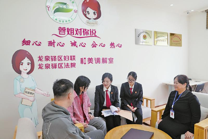 此外,十陵法庭与成都市龙泉驿区妇联合力打造“蓉姐对你说——和美调解室”,妥善处理婚姻纠纷,化解家庭矛盾,逐步形成集矛盾纠纷化解、心理疏导、关怀救助、法治宣传于一体的综合维权服务模式。