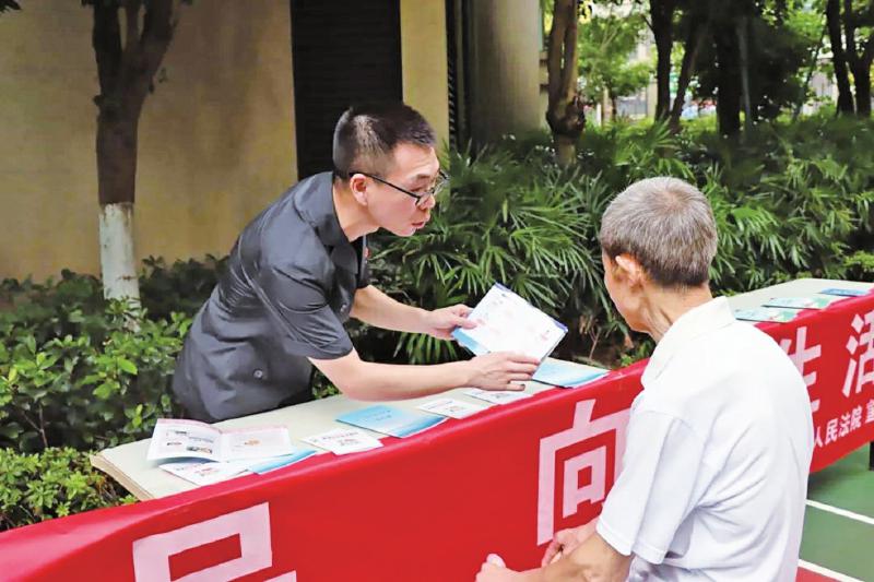 “大爷,这传单上的案例都是我们身边发生的事,您以后要遇到这种事,可得提高警惕!”近日,内江市东兴区法院干警们正拿着宣传折页,跟围拢过来的居民们热络地聊着。这是该院联合物业公司开展反诈宣传活动的热闹场景,一场“接地气、入人心”的防骗课堂在百姓家门口生动上演。