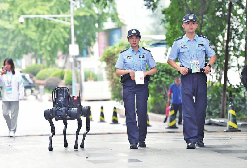 成都高新公安以前沿科技赋能安保体系,构筑起一道智能化、全天候的“移动防线”。无人警务巡防车、机器狗、翻译眼镜、低空警务实战平台,一个个智慧公安建设成果被投入到赛事安保实战中。成都高新公安以智慧警务的“硬实力”与为民服务的“软情怀”,为来自世界各地的朋友呈现一场既安全有序、又充满科技温度与人文关怀的世运盛会。