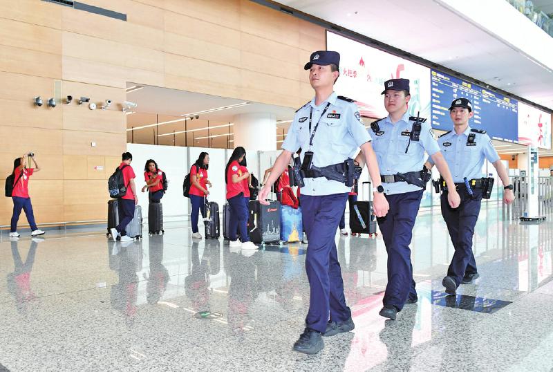 无人机反制系统全天候运转,特警携警犬高频叠加巡逻,强化关键区域震慑。勤务部署动态优化,重点加强国际到达厅多语种服务及夜间、交通枢纽警力,确保响应迅速。便民服务持续升级,两机场增设“一站式”服务点,7月以来,开展便民服务事项超2600件,有效化解误机风险。