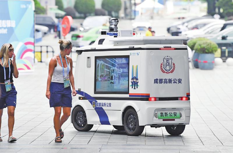 8.成都高新公安无人警务巡防车吸引了外国运动员目光