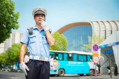 赛场周边,成都新都交警顶着烈日执勤 成都市公安局供图