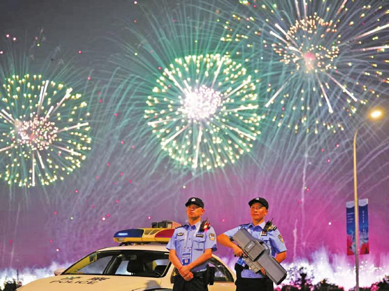 焰火晖映耀蓉城。漫天焰火落下,在成都市公安局大保支队枪爆大队民警任武的眸光中流转:“开幕式前,我们在燃放区坚守50个小时。能让观众和市民安心观赏完美绚烂的焰火‘盛宴’,一切努力都值得”。
