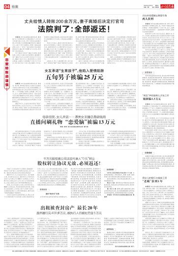 本报讯(四川法治报全媒体记者 雍剑波)女子在明知男方已婚的情况下仍与对方发展为情人关系男子为维系这段婚外情3年里累计为其转账400多笔共计200多万元妻子与男子离婚后