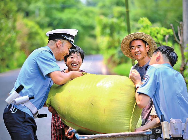 半小时后,警民合力将全部稻谷和打谷工具抬上车、运回家。这一路,既是搬运路,也是宣传路。村民拉着两人的手,连声道谢:“你们真是实在,不但教我们注意安全,还帮忙干活。”两人笑着回答:“我们‘敲门行动’就是要走进大家心里去。你们打谷子,我们‘收’安全,大家都丰收!” 何声柯 李雪婷/文 刘泽华/图