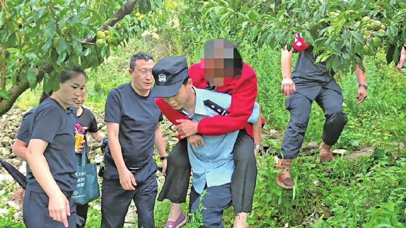 21日上午8时,一名群众反映,曾在夹山墩发火沟(小地名)附近疑似看到阿婆。此时,天空突降大雨,山路湿滑泥泞,搜救难度陡增。搜救队伍向夹山墩周边扩大搜寻范围。上午11时30分,在夹山墩水果种植基地负责人及当地群众的协助下,搜救队终于在发火沟附近找到了走失的阿婆。当时,阿婆正蜷缩在树林下的草丛中,万幸身体并无大碍。搜救民辅警迅速为其披上外套保暖,小心翼翼地将其从陡坡背下,安全护送上了警车。