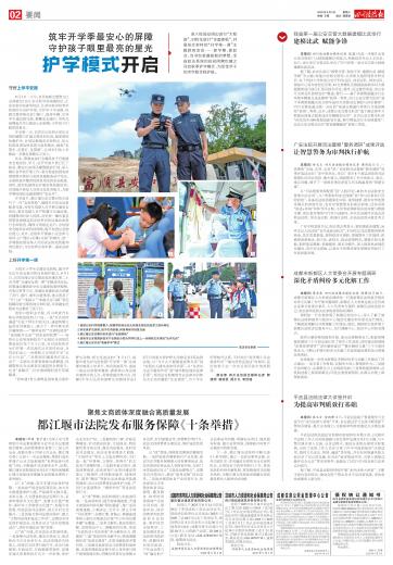 深入校园及周边进行“大检查”对校车进行“全面体检”开展形式多样的“开学第一课”主题教育活动…… 新学期新起点当书包装满崭新的梦想全省政法系统的叔叔阿姨也随之开启秋季护学模式
