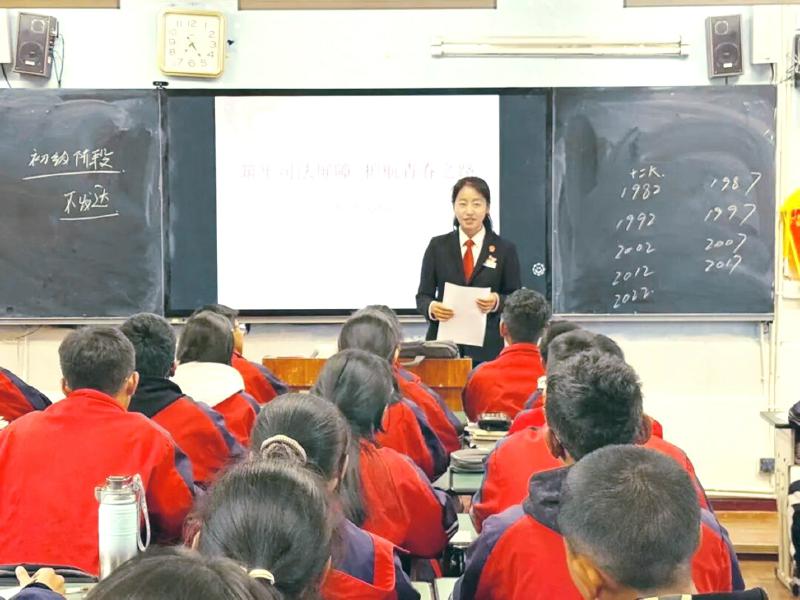 •   9月8日,理塘县法院“正义雪莲”女子审判团队走进理塘县中学,开展以“筑牢司法屏障,护航青春之路”为主题的开学第一课。本次宣讲创新采用“讲解+竞答”模式,通过有奖竞答环节激发学生学习兴趣,让法律知识在轻松愉快的氛围中深入人心。