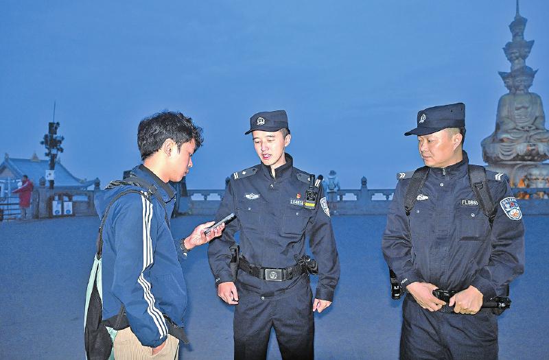 当城市灯火渐隐于云海之下,从山脚到海拔3079米的峨眉之巅,一个个“孤峰警务室”的灯光就会为夜爬峨眉山的游客亮起,“夜巡执勤队”也立即出动。