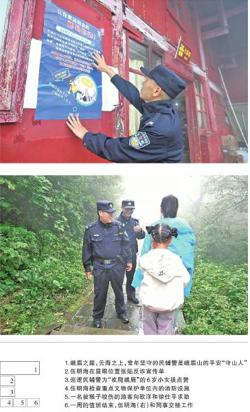 驻守这些警务室的民辅警七天一轮换,每次进山都要携带生活物资,徒步翻山越岭。伍明海是驻守洗象池警务室的辅警,位于白云深处的洗象池常年笼罩在雨雾之中。清晨,山间寒气逼人,伍明海紧了紧腰间的警务装备,然后踏入浓雾之中,这是十余年来,他重复过无数次的巡逻开场。而从山下前往九老洞警务室,辅警戚大军要攀爬垂直高差达300米的险坡“九十九道拐”,耗时四五个小时才能抵达。
