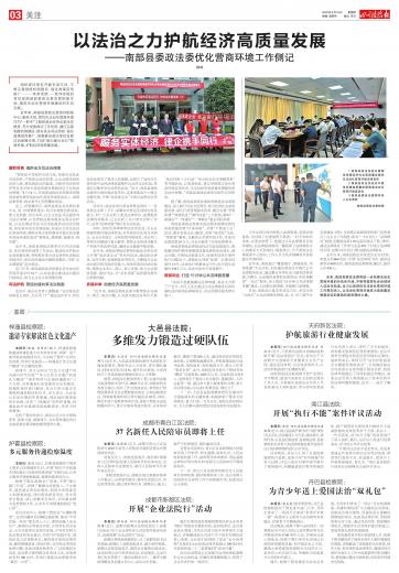 杨林 组织政法单位开展专项行动不断完善制度机制建设、强化政策宣传推广……一条条举措、一系列经验的背后是南部县委政法委发挥职能作用推进法治化营商环境建设的生动实践 近年来