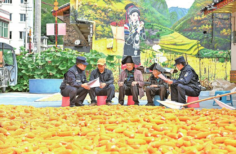 金风送爽,五谷丰登。昨(23)日是秋分,也是第八个“中国农民丰收节”,九龙县公安局雪洼龙派出所的民警走进农家院落,向群众宣传防范电信网络诈骗知识。 当前正值秋收农忙时节,为保护群众丰收成果,九龙县公安局借势“石榴籽警务”,聚焦农村反诈薄弱环节,将宣传阵地前移至田间地头,集中开展“护秋收反诈骗”宣传活动。民警聚焦常见的虚假合同套路、压价陷阱、假农药危害等骗局,手把手地教大家如何识别和防范,全力守护农户的“钱袋子”。 郎杰 四川法治报全媒体记者 张磊 摄影报道