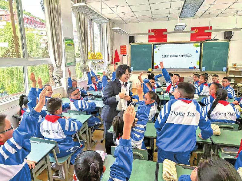 在康定市检察院“甘孜绿芽”未检团队开展的法治启蒙课上,同学们踊跃举手抢答