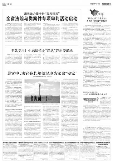 四川法治报全媒体记者 李欣璐 王焰 文/图 秋天的若尔盖湿地晨雾还未散粳成都铁路运输第二法院和若尔盖县法院的干警及若尔盖湿地保护区生态管护员已经深一脚浅一脚地走在草地上