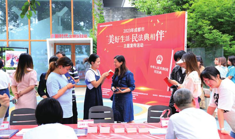 关键节点“月月新”。围绕建强“大后方”、唱好“双城记”、做强“都市圈”、建好“示范区”、打造“幸福城”、办好“大运会”、优化法治化营商环境、促进民营经济发展等中心工作,成都市结合国家安全日、知识产权日、防范电信网络诈骗等重要节点统筹开展“一月一主题”普法宣传活动年度1.2万余场次,覆盖450万人次。2021年民法典颁布一周年之际,成都市举行了民法典颁布纪念活动。通过“线下推广、线上引流”的方式开展民法典宣传,累计吸引超170万余人观看,超1.76万人次参加“云PK”互动。同时,组织开展“市直机关党员干部线上学法暨民法典学考”知识竞赛活动,吸引约10万人参与。2023年成都大运会倒计时100天之际,成都市司法局、成都大运会执委会法务部和成都市律师协会共同发布“大运英语普法100句”,被央视《新闻直播间》点赞。