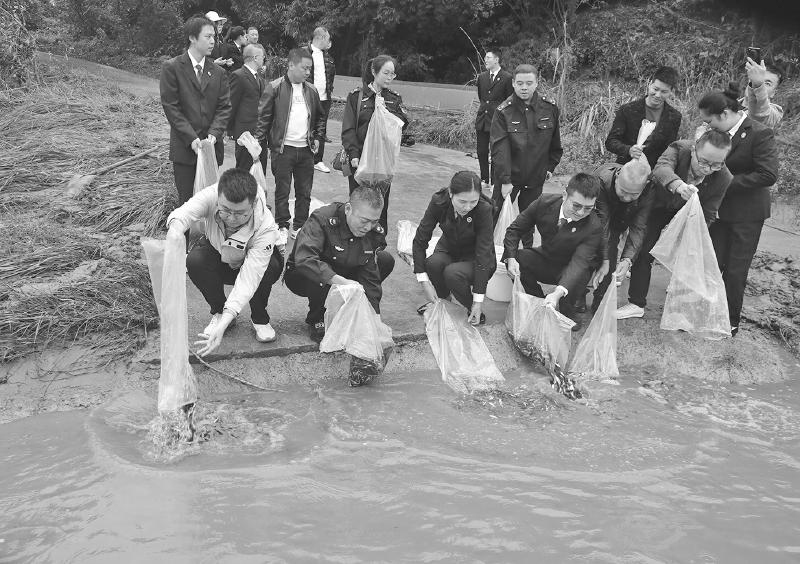 24日,渠县检察院联合县法院、县公安局、县司法局、县农业农村局、县水务局、县生态环境局等多家单位,首次在渠县丰乐镇巴河岩原鲤华鲮国家级水产种质资源保护区,开展增殖放流暨公益诉讼法治宣传教育活动,督促非法捕捞案件当事人履行生态修复责任,推动渠江水域生态系统性恢复。本次活动聚焦“谁破坏、谁修复”的司法原则,通过多部门协同履职,引导涉案人员从“生态破坏者”转变为“生态修复者”。在科学选种与规范流程下,共计向渠江放流岩原鲤、青鳙、中华倒刺鲃等本土珍稀鱼种31.5万余尾,旨在改善水域环境,修复生物链,提升渠江生态系统的稳定性和水生生物的多样性。