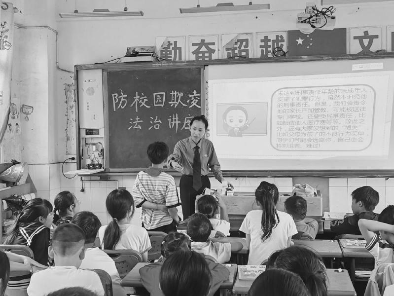近日,自贡市贡井区未成年人综合保护“六防行动”宣讲团成员闵莉欧走进牛尾学校,为全校师生普及如何防范校园欺凌的知识。她从校园欺凌的法律定义入手,重点讲解校园欺凌的具体表现形式、违法性及需要承担的法律责任,通过让学生分别扮演欺凌者、受害者和旁观者,体验不同角色的感受,引导大家明白“欺凌无小事”,既要坚决拒绝成为欺凌者,也要学会在遭遇欺凌时勇敢说“不”。