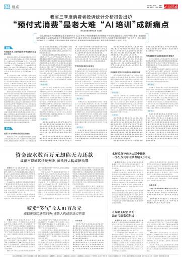 四川法治报全媒体记者 刘文慧 3日四川省保护消费者权益委员会发布关于2025年第三季度消费者投诉信息统计分析报告报告显示2025年第三季度