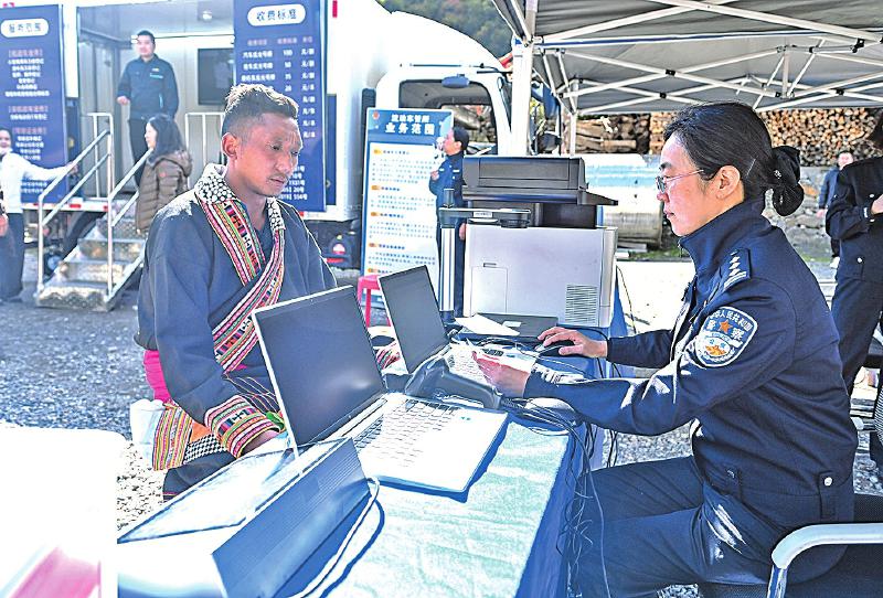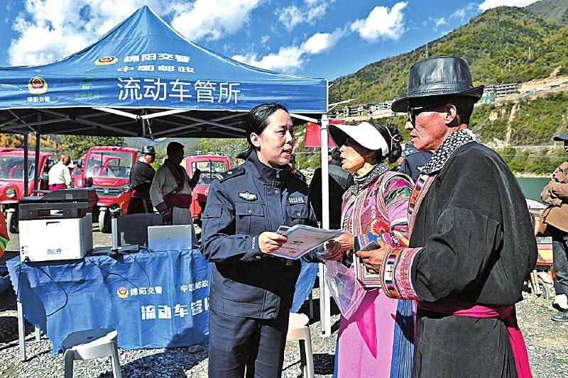 10月30日,绵阳市公安局交通警察支队将交管服务直通车开进平武县白马扒昔加古寨,为周边乡镇群众送来家门口的车驾管服务,切实解决偏远地区群众“办事远、办事难”问题。