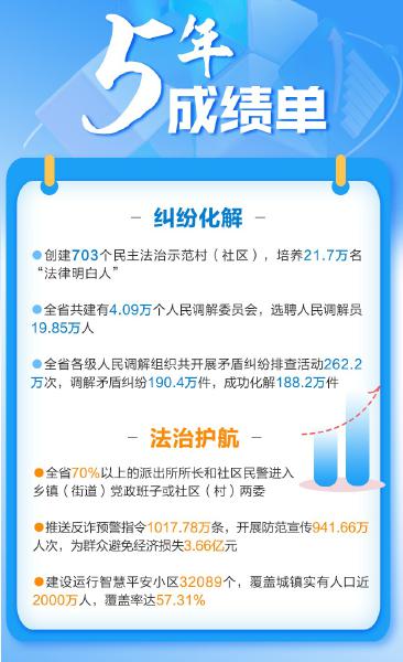 省、市、县联动开展“八五”普法、“宪法宣传周”、“法律七进”、“法治四川行”等宣传教育活动,创建703个民主法治示范村(社区),培养21.7万名“法律明白人”;五年来,全省各级人民调解组织共开展矛盾纠纷排查活动262.2万次,超过80%的人民调解案件在乡、村两级得到就地妥善处置;全省近1500万名注册志愿者、7万余支志愿服务队、13.57万名专业社工,成为社会治理中不可或缺的“温柔力量”……发布会上,一组组数据、一个个案例,描绘出5年来社会治理成效的实践缩影和生动图景。