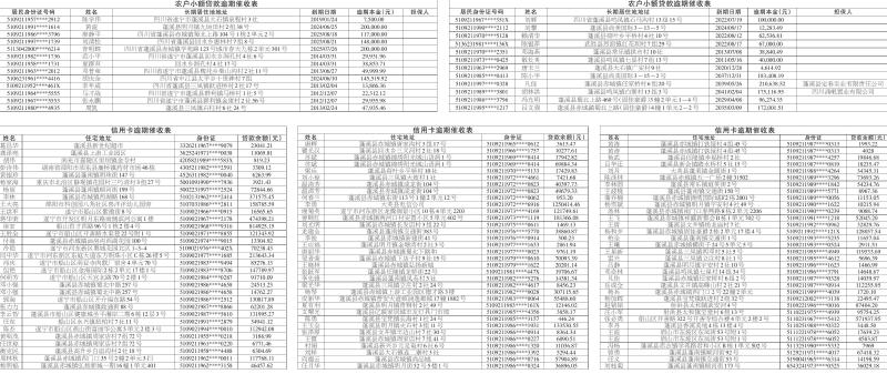 以下借款人或持卡人(见附表)在我行办理的信用卡业务或个人贷款业务均已发生逾期,截至本公告发布之日,仍未按合约约定履行还本付息义务。因借款人或持卡人目前下落不明、无法取得联系,我行根据《最高人民法院关于审理民事案件适用诉讼时效制度若干问题的规定》(2020年12月29日公布)第八条(四)款等相关规定,对所透支本金及积欠利息进行公告催收。请以下借款人或持卡人于本公告发布之日起三十日内,前往我行或通过我行官方渠道(手机银行、网银、ATM 机等)归还欠款(积欠利息按照相关规定计算)。否则,逾期未还的,我行将依法采取诉讼、财产保全、强制执行等措施,并报送征信机构,相关法律后果由持卡人自行承担。若在此期间已归还,请忽略。