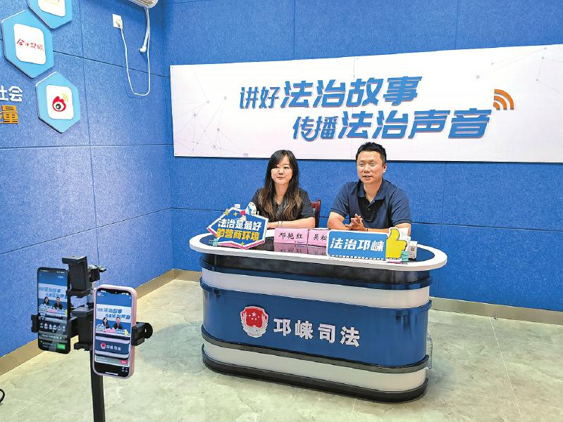 3.邛崃市开通线上专栏,通过直播和定期发布涉企法律知识等形式,提高服务便捷性和传播度。图为开展“法律明白人”微课堂直播暨一码检查专题直播 成都市司法局供图