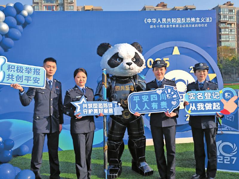 •   23日,《中华人民共和国反恐怖主义法》颁布十周年“全民反恐 共创平安”反恐怖宣传教育活动启动仪式在西南民族大学航空港校区举行,首次发布四川反恐IP“非你貊蜀”(寓意“全民反恐非你莫属”)。