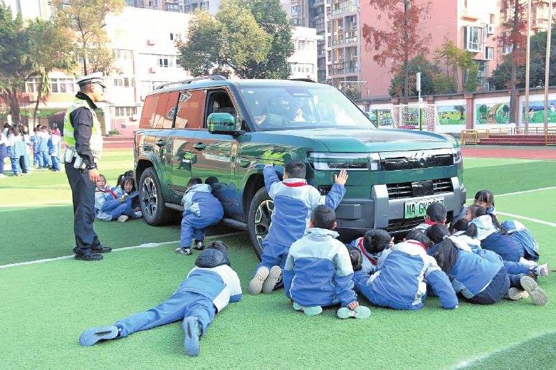 在车辆盲区实验中,工作人员摆放小型汽车,组织学生轮流站在车辆前方、后方、侧方等典型盲区位置,其余学生扮演驾驶员直观感受“看不见”的真实场景,牢记“远离车辆盲区”的安全准则。“小交警”实践体验环节更让学生们热情高涨,在交警一对一指导下熟练掌握指挥手势后,10名“小交警”在校门口路段对骑行电动车不戴头盔等不文明行为进行温和劝导。四川法治报全媒体记者 夏菲妮成都市公安局青白江区分局供图