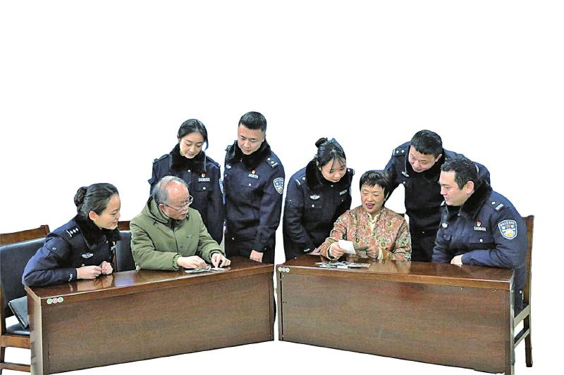 1月4日,内江市公安局市中区分局,两位老民警拿着几张泛黄的老照片给年轻民警讲述过去的故事。对照片里身着72式警服的李华良和杨宗莉来说,岁月的沉淀染白了双鬓,警察的眼神依然坚毅;年轻的容颜虽然随时光逝去,温柔的气质依旧笑靥如花。