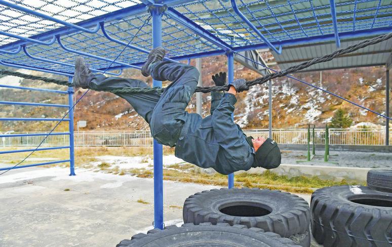攀登索降,敏捷的身影在垂直的墙面上“飞檐走壁”;面对110米障碍,冲刺、跨越、匍匐,动作迅猛连贯;翻滚200余公斤的轮胎,比拼的不仅是力量,更是耐力与协作……在寒风凛冽的训练场上,特警队员们围绕攀登、综合战术、快速射击等重点难点科目,在极寒条件下从严从难展开超负荷、超极限、超强度训练。