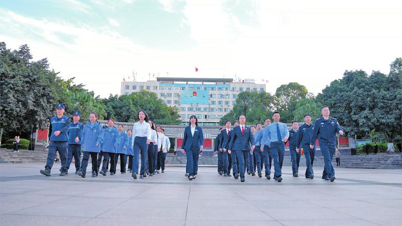 忠诚为民砺精兵,公正智勇创佳绩。2025年,资中县政法机关全面落实中央和省委、内江市委关于政法工作的决策部署,立足百万人口大县经济社会发展实践,紧扣“强忠诚、善制胜、敢担当”工作定位,抓严抓实“1464”政法实践举措,科学实施县镇分类、项目分解、责任分担、任务分领、经验分创“五分法”,创新打造“枫满资中”治理品牌,夯实筑牢“善治船城”安全屏障。